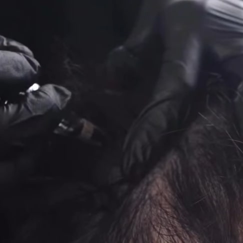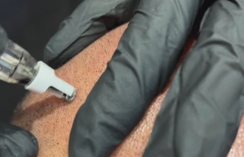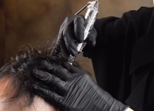 専用のマシンと極細の針を使い、頭皮にインクでドットを打つ施術。