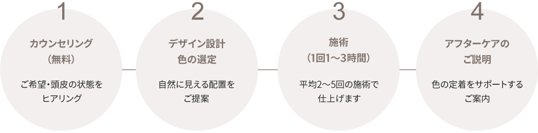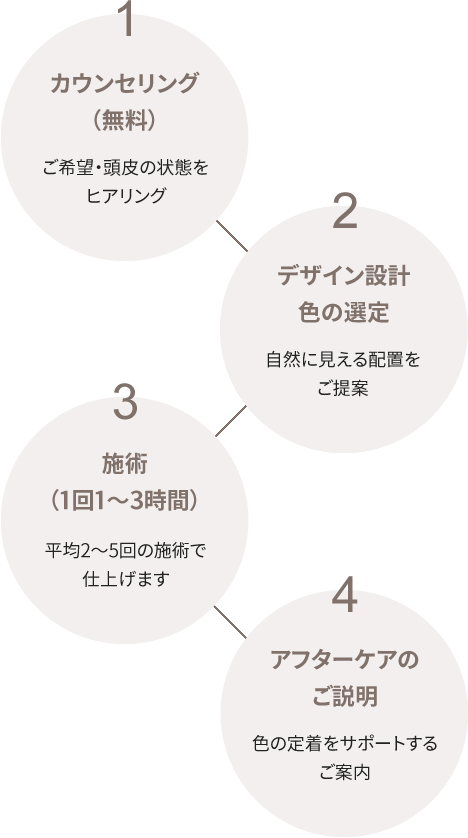 - 初回カウンセリングにて、頭の形・肌色・ご希望の濃さをもとにデザイン設計いたします